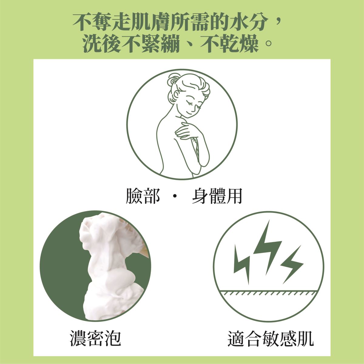在保持肌膚潤澤的同時, 清爽潔淨的臉部及全身用香皂。 柔軟濃密的泡沫能溫和清潔肌膚, 同時去除多餘油脂與暗沉,使肌膚光滑細緻。