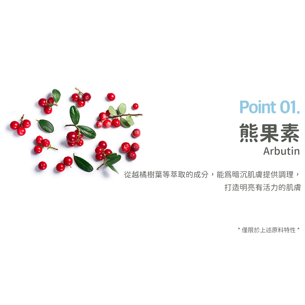 含有熊果素,可調理暗沉的肌膚,打造充滿活力和水潤的肌膚。
